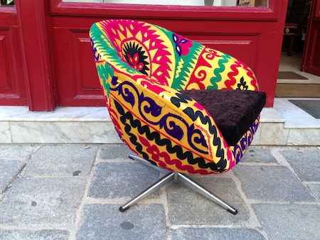 Vintage Drehsessel -1960´s- SOLDVintage Drehsessel, neu tapeziert und gepolstert in unserem Werkstatt in Wien, mit Suzani Stickerei aus Usbekistan und Samt. |