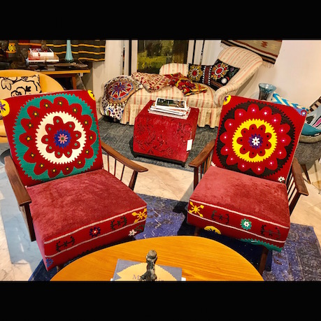 Vintage Fauteuil mit Suzani und Samt, 2 Stück![]() |