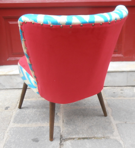 vintage fauteuil mit Ikat Textil neu tapeziert -Keshte design