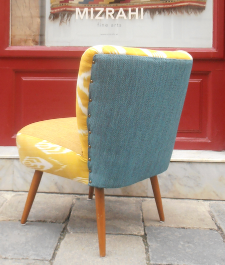 VERKAUFT -Vintage Clubchair mit Ikat und Samt