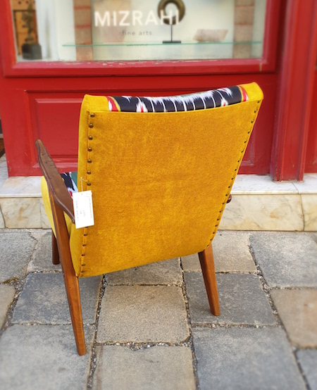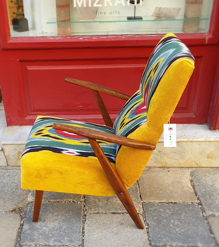 SOLD - Vintage fauteiul mit Samt und IKAT-Stoff aus Usbekistan![]() |