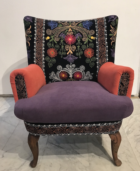 Vintage Ohrenfauteuil mit Suzani und Samt