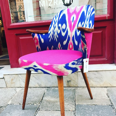 Vintage Club Chair-1960`s- mit Ikat-Drucktextil aus Usbekistan |